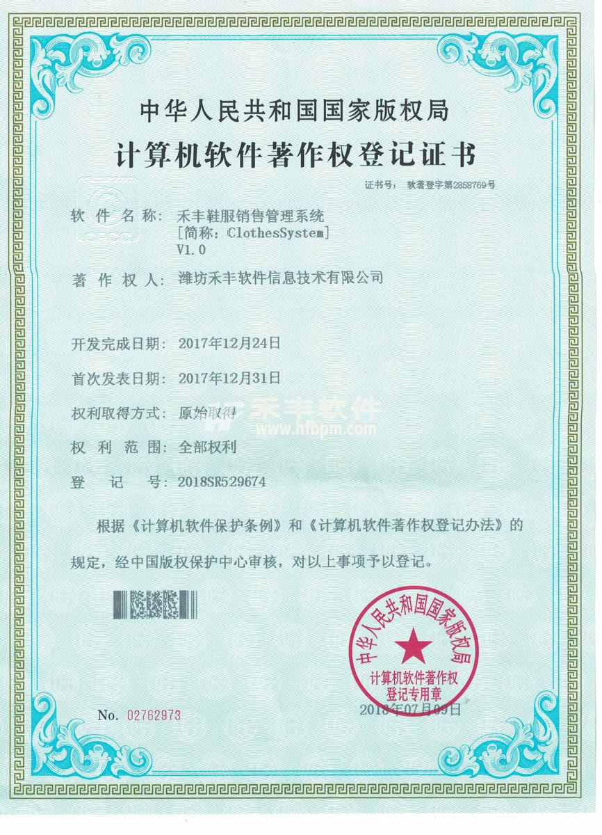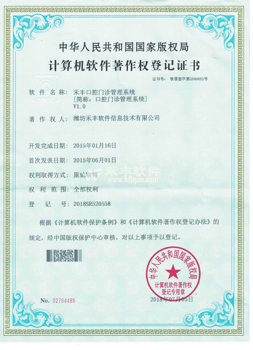收到《鞋服通》、《旅游管理平台》、《口腔门诊管理系统》软件著作权登记证书。