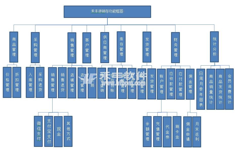 主要功能包括:商品管理、价格管理、采购管理、销售管理、店铺管理、促销管理、会员管理、供货商管理、库存管理、应收款管理、应付款管理、配货管理、发货管理、供货商来往账管理、收入管理、支出管理、利润核算等基本功能;同时包括销售数据分析、会员消费分析、库存分析等大数据分析的高级功能;手机端采用H5的方式与微信公众号关联,顾客可以通过手机进行商品浏览、下单购物、在线支付。商家可以通过手机进行商品发布、上架下架、库存查询、库存调整、退货审核、销量监控等操作。该系统还具有团购和分销功能,下设团长(代理商)和普通用户两种角色,团长享受下级普通用户的购物差价;团长之间又设推荐人,推荐人可享受被推荐人一定比例的购物返利。(尽管医药通支持团购与分销功能,但对于药品的特殊性可以忽略使用该功能。