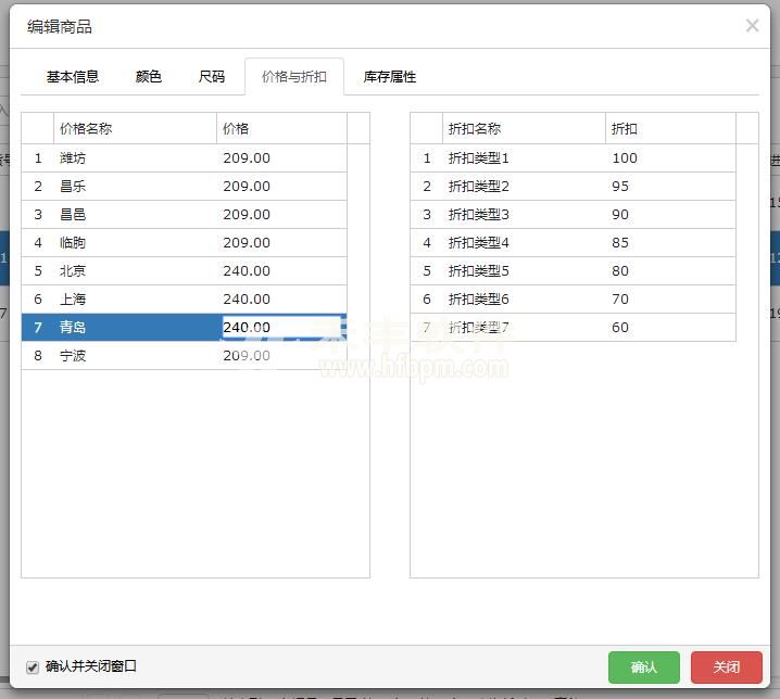 每件商品根据系统存在的价格类型和折扣类型分别设置具体价格和折扣值,所以系统在使用时必须设置好价格类型和折扣类型,如果在系统使用中,新增了价格类型或折扣类型时,需要重新为每件商品重新生成价格。